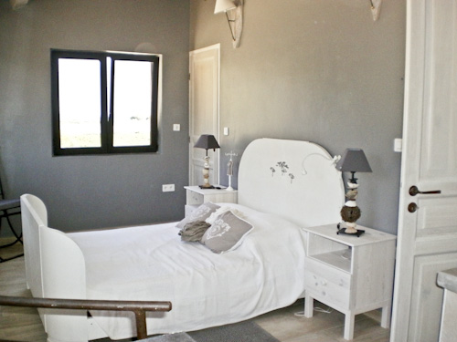 Terrasse couverte avec point de vue sur les pinèdes environnantes et les vignes. Vue sur les étangs de Bages depuis la chambre parentale.