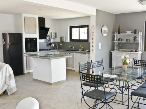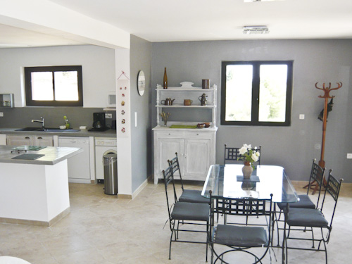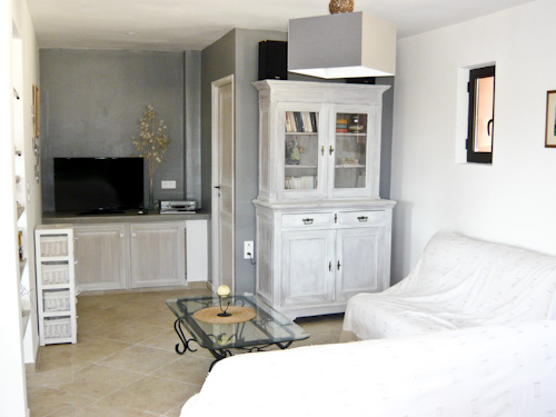 Gîte à l'étage, comprenant un grand séjour-cuisine tout équipé (TV, DVD, hifi). WC indépendant.
